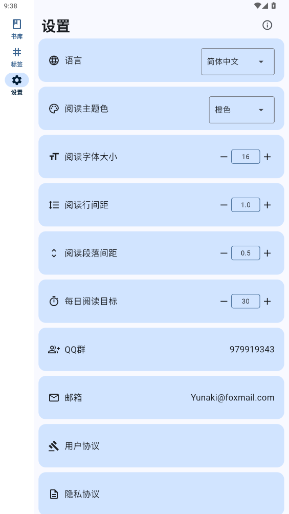 moeli阅读是一款专为书籍爱好者设计的阅读应用,提供丰富的功能和个性化设置,提升阅读体验。功能全面,操作简单,适合追求个性化、无广告阅读体验的用户。无论是本地还是云端书籍,都能提供舒适的阅读环境。支持EPUB、PDF、MOBI、TXT等多种格式,满足不同阅读需求。可调整字体、字号、行距、背景颜色等,提供舒适的阅读环境。支持多设备同步阅读进度、书签和笔记,无缝切换设备。