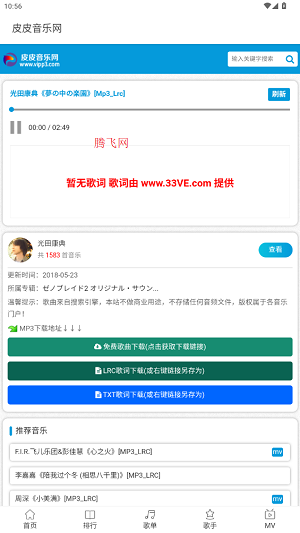 皮皮音乐网app,堪称音乐爱好者的福音!它汇聚海量音乐资源,国内外歌曲一网打尽,流行、摇滚、古风等风格俱全。不仅有丰富歌单,支持抖音爆款一键收藏,还提供超多MV。免费畅听,多种音质任选,轻松解决付费烦恼。