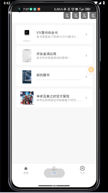vv图书正式版文字阅读功能,本app不自带书源,所有书源是自建的,数据全部存在点鸭数据表中,ui做的很简陋,所以ui资源少。