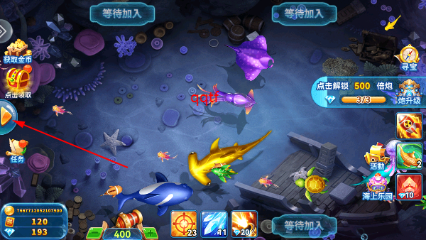 1、首先在捕鱼游戏界面点击左边的菜单。