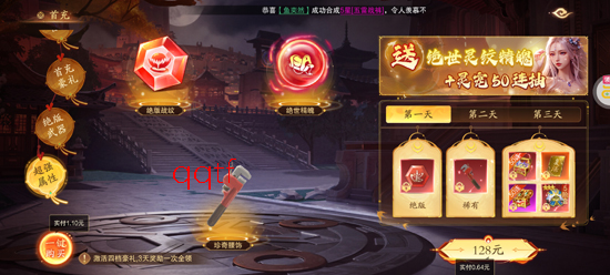 ★【升级福利】升级送千抽,高品质稀有装备、绝版神兵爽抽不停